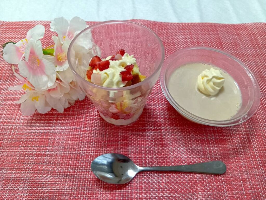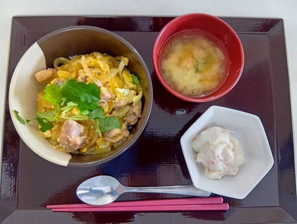 しっかり体を動かしてお腹が空いた後のご飯は、また格別! 本日のメインは、ふっくら炊き上がったご飯に合う「親子丼」でした。 「動いた後のご飯は美味しいね」と、皆様いつも以上に箸が進んでいらっしゃいました。