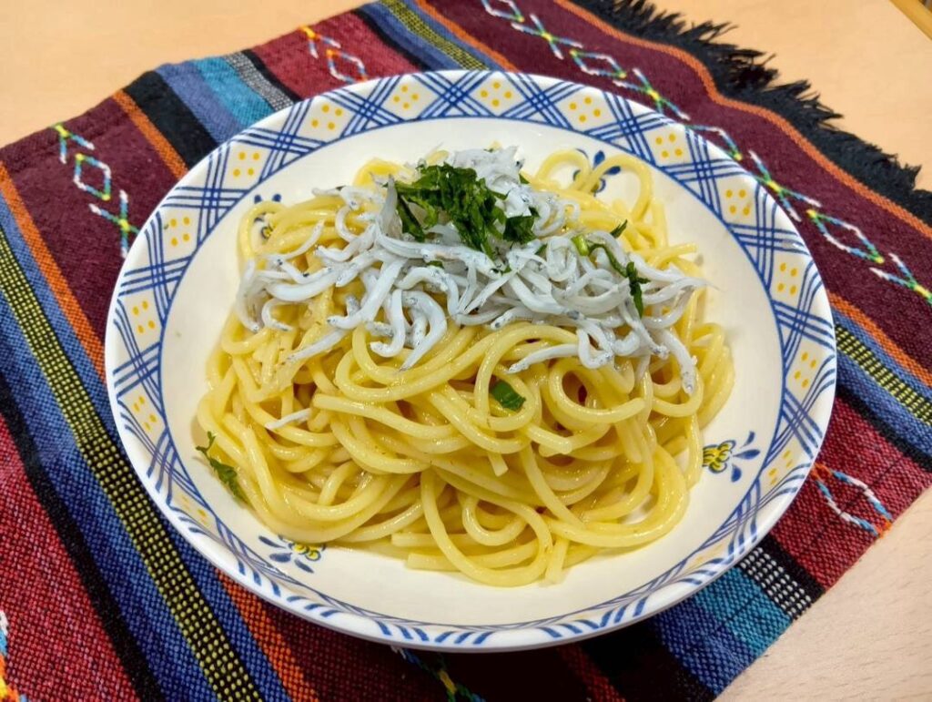 🍳 ライブキッチン:スタッフが目の前で腕を振るう楽しいひととき。:春のしらすを使ったしらすパスタです!